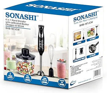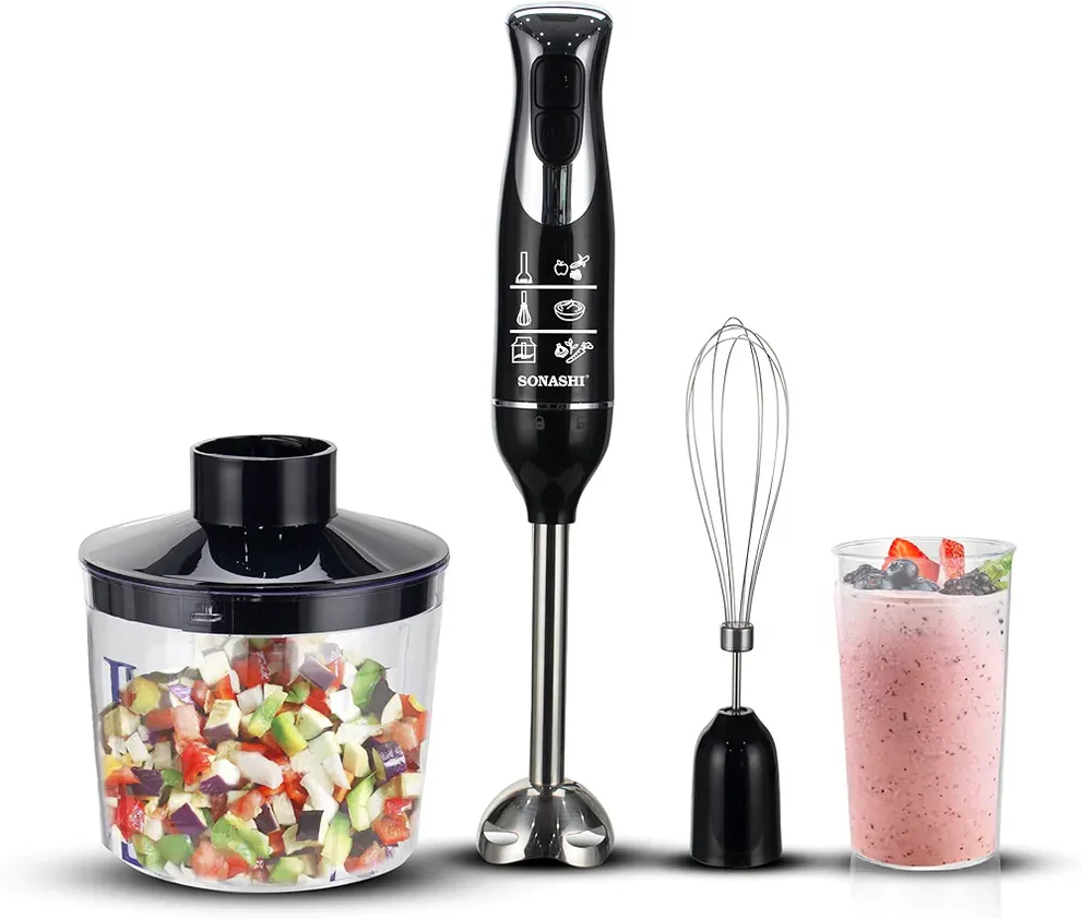 Bras mixeur plongeant 3 en 1 à 600 W Sonashi SHB-187JCW Noir x16,500 د.ج