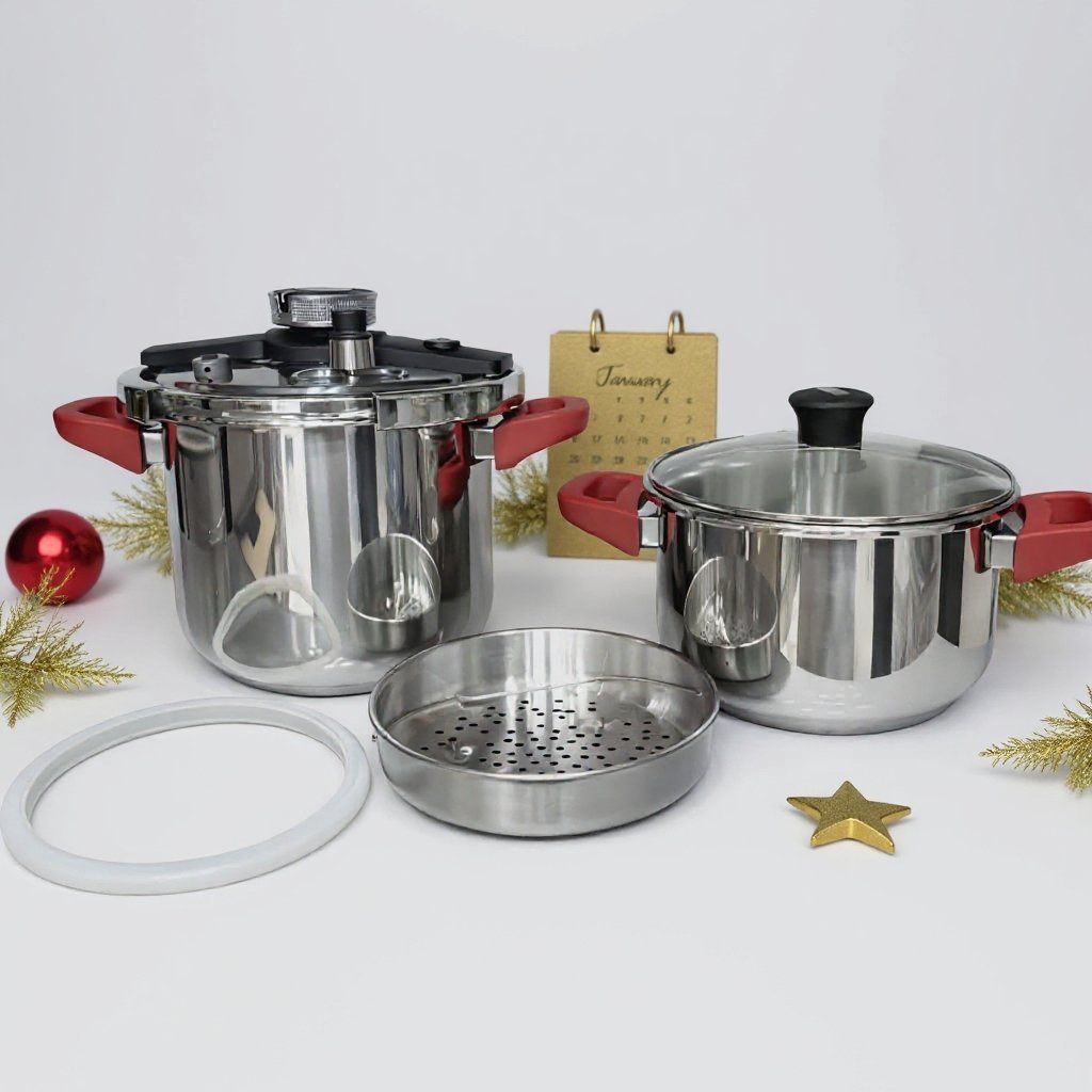 Cocotte 6 Pcs 5+7L en inox 18/10 Avec 03 Système de sécurité KitchenWare Qualité 1er Choix