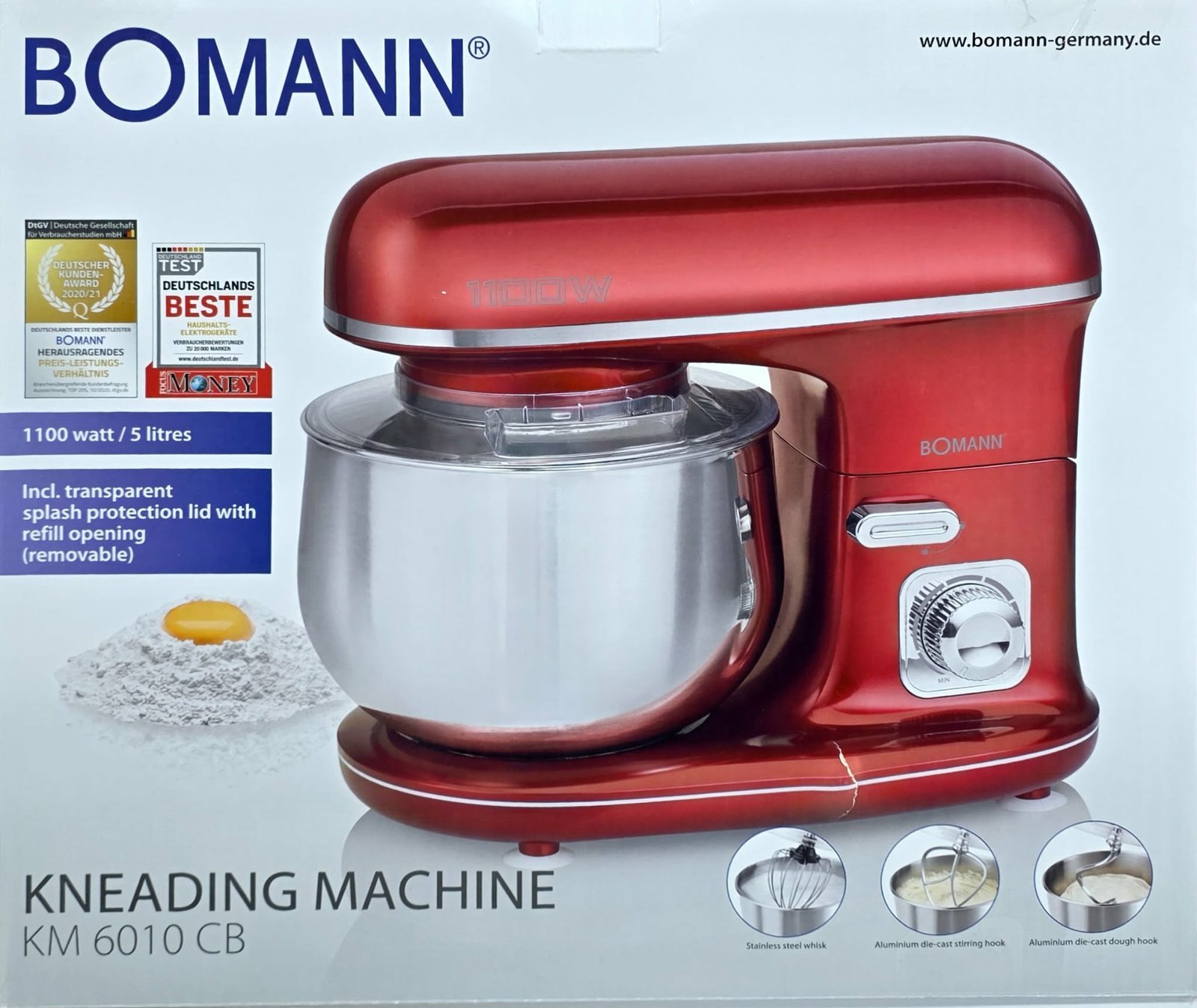 Pétrin Multifonction 5L 1100W Bomann KM 6010 CB Rouge